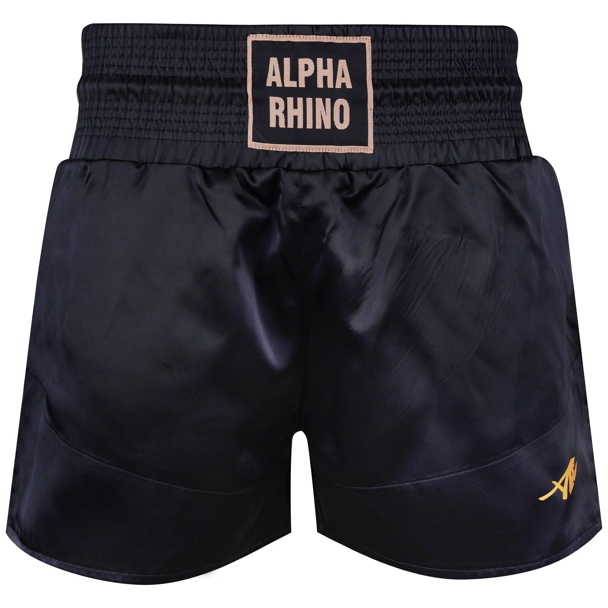 Dominate the ring with style and power. The Alpha Rhino Black Muay Thai Shorts with gold signature detail are designed for ultimate performance, durability, and freedom of movement.