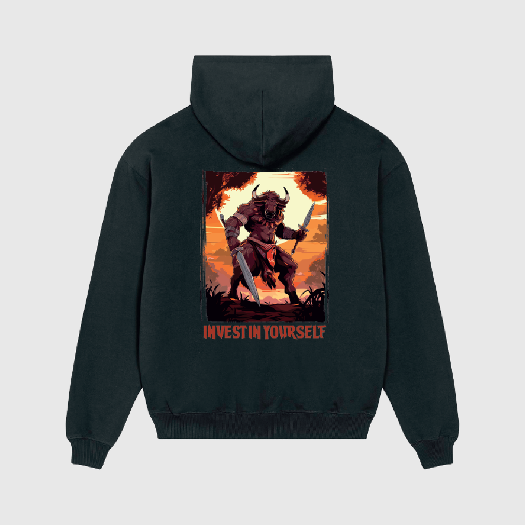 Stand out with the Alpha Rhino Oversized Black Hoodie with Buffalo Print. Made from French Terry, 100% organic carded cotton (400 g/m²), this heavyweight hoodie offers premium comfort, durability, and a bold streetwear look. The oversized fit ensures freedom of movement, while the Buffalo graphic on the back makes a powerful statement.