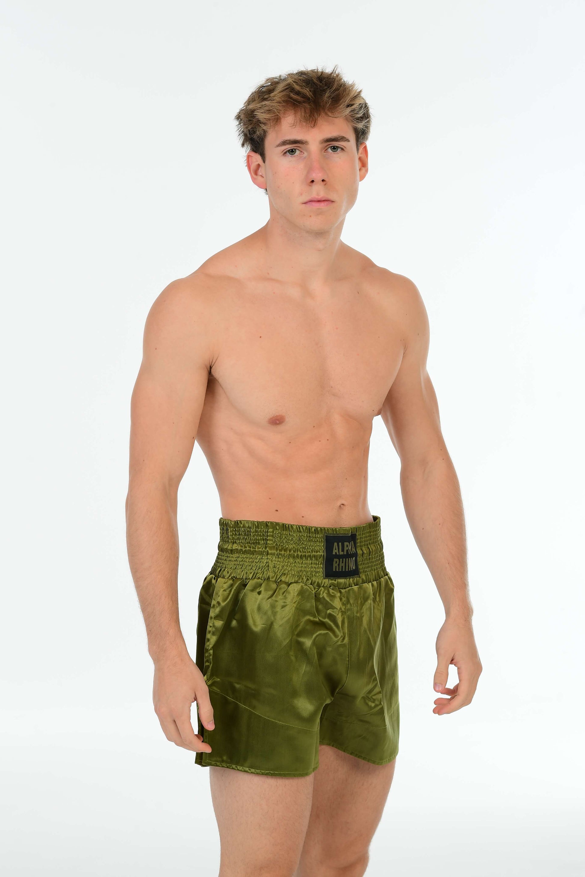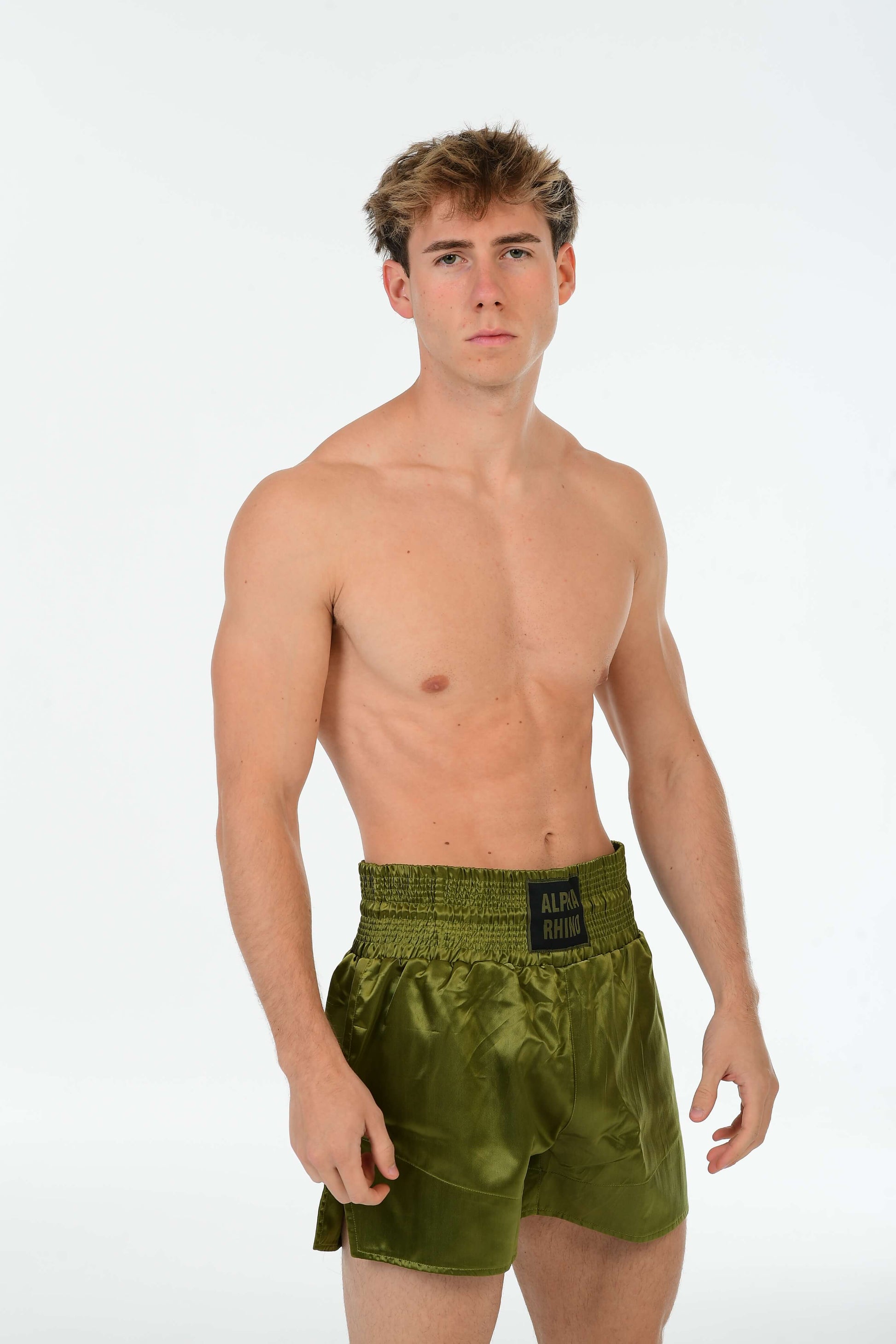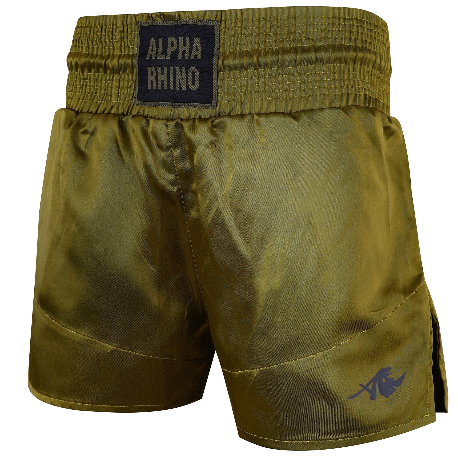 Step into the ring with confidence in the Alpha Rhino Olive Green Muay Thai Short. Built for fighters, these shorts offer ultimate mobility, durability, and comfort with a sleek olive green design and white signature detail.